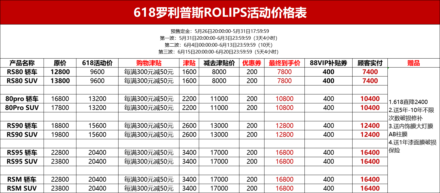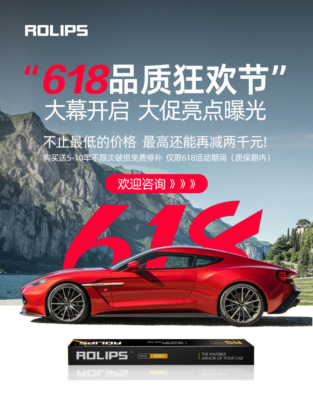 618品質(zhì)狂歡節(jié)已經(jīng)開(kāi)啟,對(duì)于連續(xù)多年隱形車衣銷量top1的羅利普斯ROLIPS來(lái)講,品質(zhì)始終是第一,其次是價(jià)格。此次活動(dòng)為了答謝新老車主,保證品質(zhì)的前提下,多款車衣直降2000以上,提前預(yù)定,更有多重好禮相送!先到先得,送完為止!